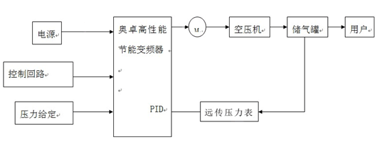 空氣壓縮機采用變頻調(diào)速技術進行恒壓供氣控制時,系統(tǒng)原理框圖如圖所示。