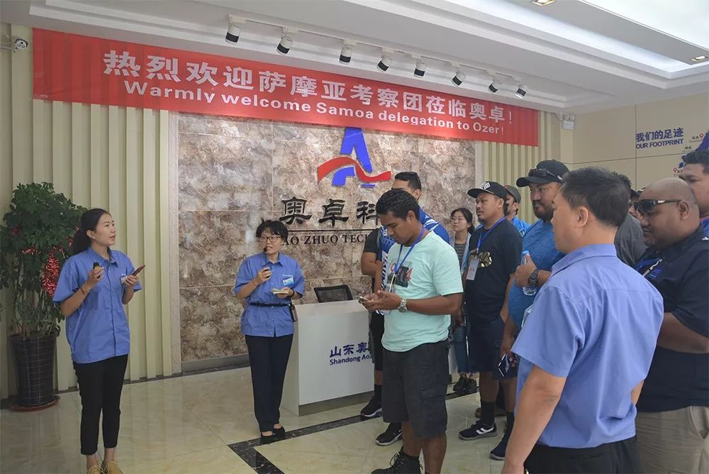 張總表示,奧卓公司緊跟國家發(fā)展步伐,緊緊把握”一帶一路”發(fā)展機(jī)遇,積極融入“一帶一路”建設(shè)大潮,大力發(fā)展國際市場,公司2015年通過了國際歐盟CE認(rèn)證,具有獨立的國際進(jìn)出口權(quán),已與“一帶一路”沿線二十多個國家建立了合作關(guān)系,朝著公司“創(chuàng)國際品牌,鑄百年企業(yè)”的發(fā)展目標(biāo)不斷邁進(jìn)。奧卓公司非常重視薩摩亞考察團(tuán)一行來訪,愿意同“一帶一路”沿線國家協(xié)同聯(lián)動發(fā)展。