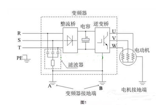 有的現(xiàn)場使用變頻器控制電機,會出現(xiàn)漏電問題,漏電電壓有幾十伏到二百伏電壓不等。針對這個問題,在這里特對此故障產(chǎn)生的原因進行理論的分析和說明如下。