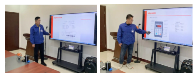 在培訓(xùn)過程中,培訓(xùn)講師針對變頻器的工作原理和元器件功能、常用參數(shù)調(diào)整、常見故障定義和日常保養(yǎng)等多個方面,為員工進行了系統(tǒng)的理論講解。同時,按照公司“要帶著問題、帶著思考參加培訓(xùn)”的有關(guān)要求,參訓(xùn)員工提出了工作過程中存在的疑點、難點問題。培訓(xùn)講師也都一一作出了補充解答,讓員工更加直觀、深刻地學(xué)習(xí)到了一些實用性變頻器知識。