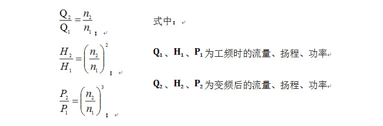 由流體力學(xué)知識我們知道:風機、水泵類設(shè)備屬于平方轉(zhuǎn)矩負載,其流量Q、揚程H、功率P與轉(zhuǎn)速N之間存在如下關(guān)系: