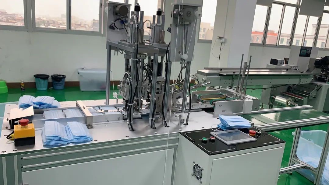 口罩機(jī)是將多層無紡布通過熱壓、折疊成型,超聲波焊接,廢料切除,耳帶鼻梁條焊接等工序制造出具有一定過濾性能的各種口罩,口罩設(shè)備不是單臺(tái)的機(jī)器,它需要多臺(tái)機(jī)器的配合完成各種不同的工序。
